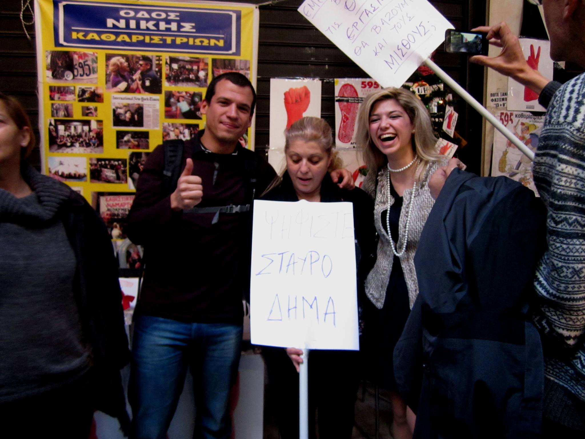 Σήμερα όχι μόνο βοηθήσαμε μέσα από σειρά προτάσεων στη σταθερότητα της χώρας, όχι μόνο αποκλείσαμε το ενδεχόμενο των εκλογών, αλλά ως χρηστοί και χρήσιμοι πολίτες, καλέσαμε τις καθαρίστριες να αποχωρήσουν από την είσοδο του Υπ. Οικ. Δεν φτάνει που ζητάνε δουλειές (;) και μισθό (;) κρατάνε κλειστή και τη μία είσοδο του Υπ. Οικ. και αναγκαζόμαστε να κάνουμε κύκλο για να μπούμε στο Υπουργείο. Τις προτρέψαμε λοιπόν να εκμεταλλευτούν τη χαρά του ελεύθερου χρόνου που απλόχερα τους δόθηκε όταν έφυγαν από τις δουλειές τους και να αποχωρήσουν. Αν δεν γίνουν οι φτωχοί φτωχότεροι, πώς θα ζήσουμε και εμείς;»