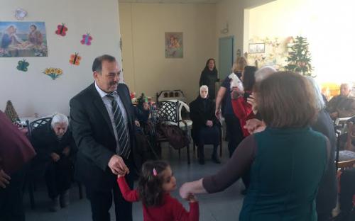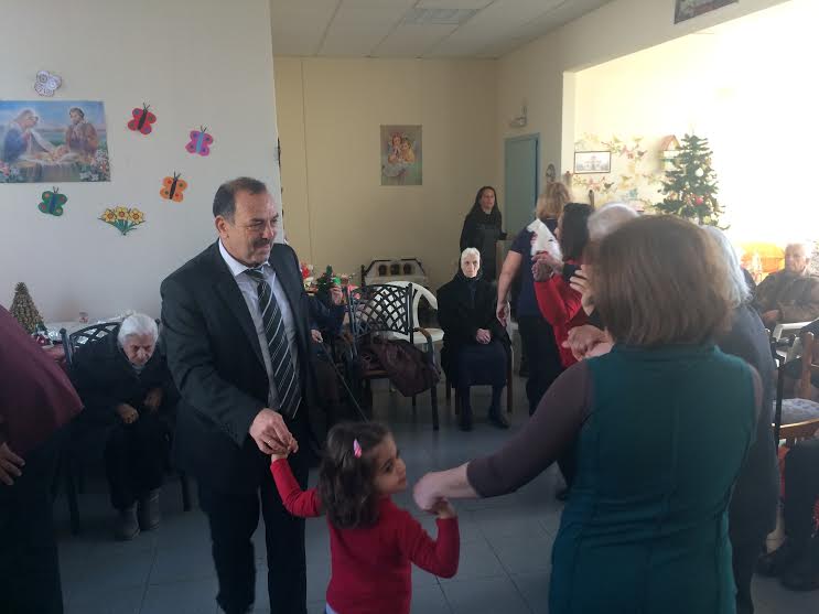 Ο δήμαρχος, χαιρέτησε έναν- έναν τους ηλικιωμένους στα ιδρύματα, τους ευχήθηκε καλή δύναμη, υγεία πάνω απ` όλα και χαρούμενες γιορτές.Ιδιαίτερα ευαισθητοποιημένος και στα θέματα των παιδιών ο δήμαρχος, ευχήθηκε σε όλα τα παιδιά που φιλοξενούνται στο Ορφανοτροφείο Θηλέων, μοίρασε δώρα, διαλεγμένα ξεχωριστά για το κάθε παιδί από τον ίδιο.έννων.