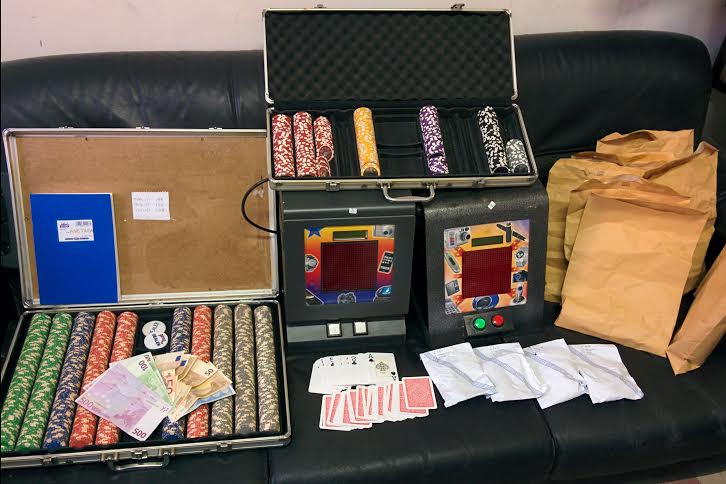Αναλυτικότερα, στο πλαίσιο της προσπάθειας που καταβάλει η Ελληνική Αστυνομία για την καταπολέμηση του παράνομου «τζόγου», πραγματοποιήθηκε αιφνιδιαστικός έλεγχος κατά τον οποίο διαπιστώθηκε ότι ο 50χρονος είχε διοργανώσει στο κατάστημα του και διενεργούσε με δυο «Dealer» το παράνομο παίγνιο «POKER - TEXAS HOLD’EM» σε δυο ειδικά διαμορφωμένα τραπέζια, στα οποία συμμετείχαν οι εννέα συλληφθέντες παίκτες με χρηματικό στοίχημα.Για την συμμετοχή στο παράνομο παιχνίδι, προκαταβάλλονταν από τους παίκτες χρηματικό ποσό που αντιστοιχούσε σε ανάλογης αξίας μάρκες.Κατά τη διάρκεια του αστυνομικού ελέγχου βρέθηκαν και κατασχέθηκαν: