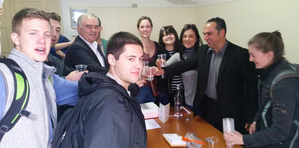 Μέσα στο πλαίσιο του προγράμματος αυτού, επισκέφτηκε τον Αντιπεριφερειάρχη κ. Γιάννη Φλεβάρη για να ενημερωθούν οι φοιτητές σε θέματα ενέργειας, βιομηχανίας και φυσικών πόρων και να ανταλλάξουν ευχές για το νέο έτος. Ο κ. Φλεβάρης μετέφερε τις ευχές του Περιφερειάρχη Ν. Αιγαίου κ. Γιώργου Χατζημάρκου ο οποίος στηρίζει το έργο και την προσφορά του κ. Τομάζου. Στη συνέχεια ανέλυσε τους άξονες στους οποίους κινείται η δευτεροβάθμια Αυτοδιοίκηση, το τμήμα του οποίου προΐσταται και μίλησε για την ιστορία των Ελληνικών νησιών του Ν. Αιγαίου, τον πολιτισμό τους, τη σημερινή γεωπολιτική σημασία τους και τις δυνατότητες ανάπτυξης και επενδύσεων.