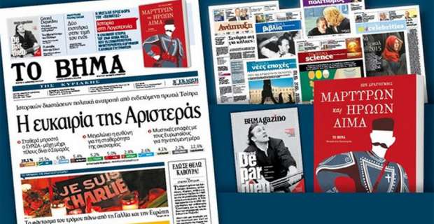 «Η ευκαιρία της Αριστεράς» είναι ο πρωτοσέλιδος τίτλος του «Βήματος της Κυριακής», με τον οποίο ο ΔΟΛ φαίνεται να αδειάζει τον Αντώνη Σαμαρά, μέχρι πρότινος στενό σύμμαχο του εκδοτικού συγκροτήματος του Σ. Ψυχάρη. Στο σχετικό άρθρο που υπογράφει ο διευθυντής της εφημερίδας, Αντ. Καρακούσης, και στον τίτλο του οποίου έχει προστεθεί το «ιστορική» («Η ιστορική ευκαιρία της Αριστεράς») σημειώνεται ότι «η ελληνική κοινωνία κινείται εμφανώς προς τα αριστερά», προχωρώντας σε «μια μοναδική επιλογή στα ελληνικά πολιτικά χρονικά, αποκρούοντας φόβους και ιστορικές εμπειρίες».