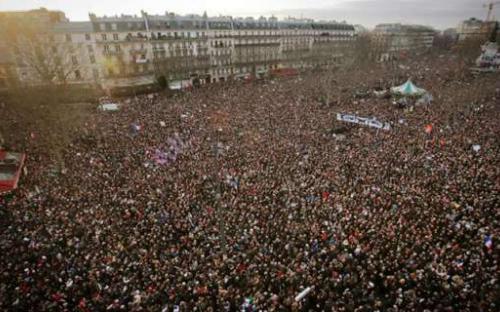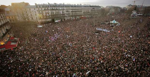 Παρά το τσουχτερό κρύο που επικρατεί στη Γαλλία, περισσότερο από δύο εκατομμύρια άνθρωποι παραμένουν μέχρι και αυτή την ώρα στους δρόμους του Παρισιού, συμμετέχοντας στη μαζική πορεία αλληλεγγύης και μνήμης, στον απόηχο των αιματηρών επιθέσεων της προηγούμενης εβδομάδας, που οδήγησε στο θάνατο 17 άτομα, στα γραφεία της εφημερίδας Charlie Hebdo, στο εβραϊκό παντοπωλείο της Πορτ ντε Βανσέν και σε άλλες περιοχές της χώρας. Η συγκέντρωση στη γαλλική πρωτεύουσα, όπως γράφει η εφημερίδα Le Monde, είναι από μόνη της μοναδική, τόσο ως προς το εύρος της κινητοποίησης που υπάρχει από φορείς, συλλογικότητες και απλούς πολίτες όσο και από τη συμμετοχή μεγάλου αριθμού πολιτικών ηγετών – περίπου 50 τον αριθμό – από όλο τον κόσμο. Εκδηλώσεις αλληλεγγύης πραγματοποιήθηκαν την Κυριακή σε πολλές ευρωπαϊκές πόλεις, με το σύνθημα «Je Suis Charlie» να πρωτοστατεί.