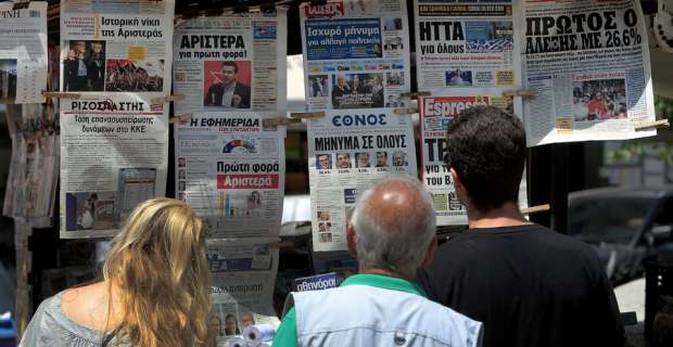«Κωδικός ΣΥΡΙΖΑ-Podemos» είναι ο σημερινός κεντρικός τίτλος στο πρωτοσέλιδο της εφημερίδας ΤΑ ΝΕΑ που προβάλλει ότι το μέτωπο του Νότου ταρακουνά την Ευρώπη ενώ με το κύριο άρθρο της ζητά να μην υπάρξουν άλλοι άδικοι φόροι. Έτσι, ολοκληρώνεται η στροφή του ΔΟΛ που με το κυριακάτικο Βήμα ανακάλυψε την «ευκαιρία της Αριστεράς» εγκαταλείποντας την κυβέρνηση που τόσο παθιασμένα στήριξε.