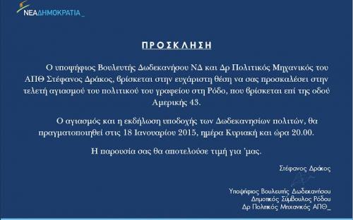 ΣΤΕΦΑΝΟΣ ΔΡΑΚΟΣ - ΠΡΟΣΚΛΗΣΗ ΑΓΙΑΣΜΟΥ ΠΟΛΙΤΙΚΟΥ ΓΡΑΦΕΙΟΥ