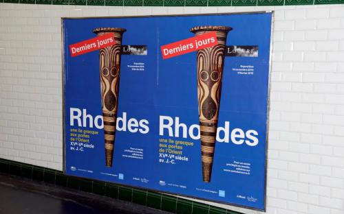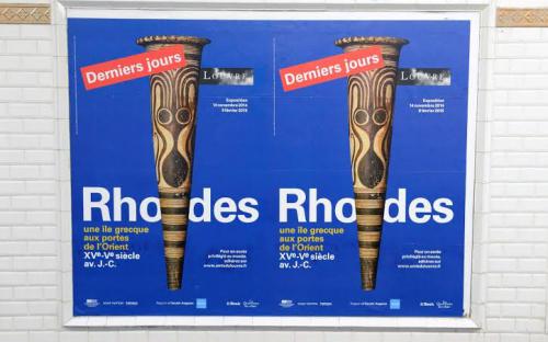 - Τις ημέρες από 12 μέχρι 18 Ιανουαρίου, που διήρκεσε η καμπάνια προβολής της έκθεσης για τους αρχαιολογικούς θησαυρούς της Ρόδου που φιλοξενείται στο Μουσείο του Λούβρου, τεράστιες αφίσες αναρτήθηκαν σε 250 σημεία σε 111 στάσεις του παρισινού μετρό, δίνοντας την ευκαιρία στα εκατομμύρια των επιβατών να ενημερωθούν για την έκθεση, η οποία θα διαρκέσει μέχρι και τις 9 Φεβρουαρίου.
