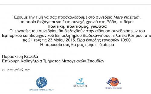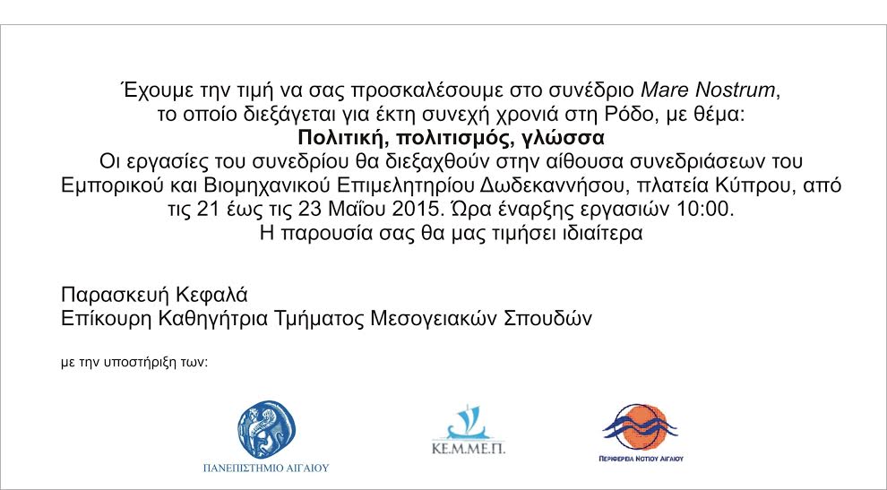 MARE NOSTRUM VI - ΠΟΛΙΤΙΚΗ, ΠΟΛΙΤΙΣΜΟΣ, ΓΛΩΣΣΑ - ΠΡΟΣΚΛΗΣΗ