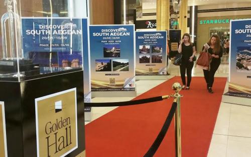 To “Golden Hall” πλημμύρισε από τα χρώματα των νησιών του Νοτίου Αιγαίου, ενώ τα events που έχουν προγραμματιστεί, καθ’ όλη τη διάρκεια της τετράμηνης περιόδου προβολής των νησιών, έφεραν στους επισκέπτες του την αύρα, τις γεύσεις και την μαγευτική αίσθηση των καλοκαιρινών διακοπών στις Κυκλάδες και τα Δωδεκάνησα.