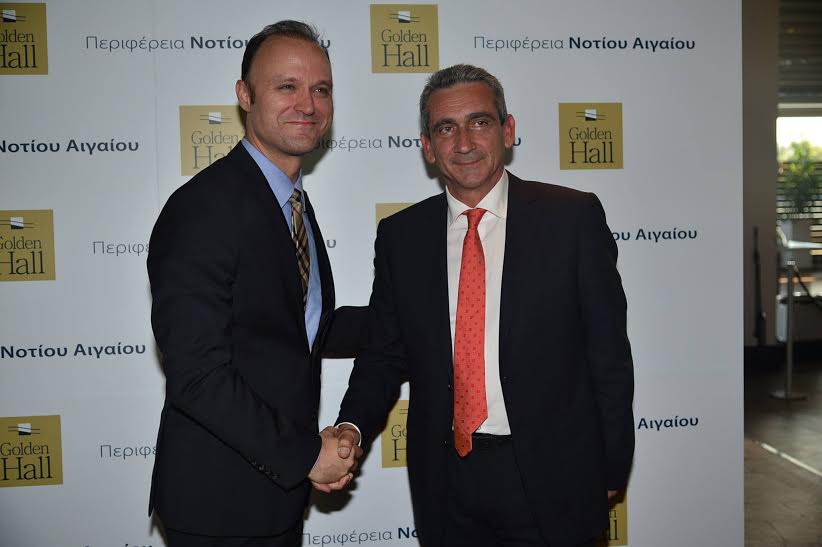 Η πρωτοποριακή δράση προβολής, με τίτλο “Discover South Aegean” που διοργανώνουν η Περιφέρεια Νοτίου Αιγαίου και το “Golden Hall”, εγκαινιάστηκε το βράδυ της Τετάρτης από τον Περιφερειάρχη Νοτίου Αιγαίου κ. Γιώργο Χατζημάρκο και τον διευθυντή του εμπορικού κέντρου κ. Θεόδωρο Παντή.