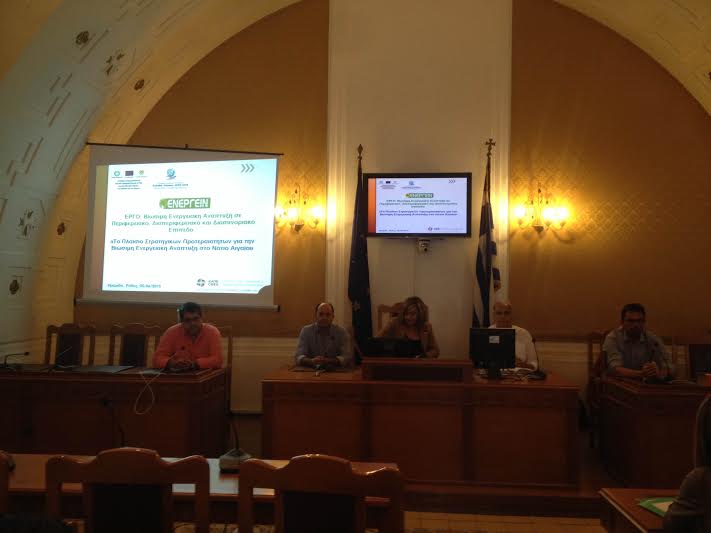 o Επίσης απηύθυνε χαιρετισμό στην ημερίδα που πραγματοποιήθηκε σε συνεργασία της Περιφέρειας Νοτίου Αιγαίου με την Αναπτυξιακή Εταιρία Περιφέρειας Νοτίου Αιγαίου - Ενεργειακή Α.Ε. στο πλαίσιο υλοποίησης του διασυνοριακού έργου « Βιώσιμη Ανάπτυξη σε Περιφερειακό, Διαπεριφερειακό και Διασυνοριακό Επίπεδο» με ακρωνύμιο «ΕΝΕΡΓΕΙΝ» .