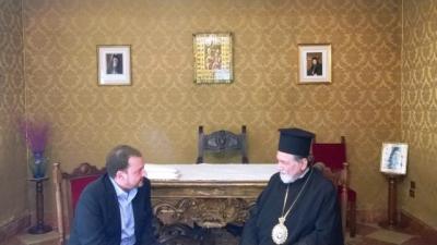 Εἰς τόν Γενικόν Γραμματέα τοῦ Ἀποδήμου Ἑλληνισμοῦ κ. Μιχαήλ Κόκκινον, ὁ Σεβασμιώτατος Ποιμενάρχης μας προσέφερεν τό ἱστορικόν «Μετάλιον» τῶν Συναντήσεων εἰς Ἱεροσόλυμα μεταξύ τῶν Πατριαρχῶν Κωνσταντινουπόλεως καί τῶν Παπῶν Ρώμης.