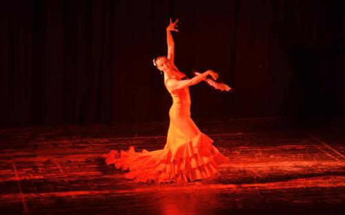 Φλαμένκο ένας απόλυτα εκφραστικός χορός, βασίζεται στο πάθος και στον αυτοσχεδιασμό του χορευτή, με χαραστηριστικά στοιχεία τις κινήσεις των χεριών και το ρυθμικό χτύπημα των ποδιών.