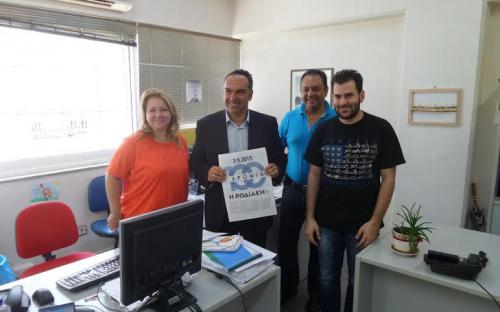 Ο Αντιπεριφερειάρχης Νοτίου Αιγαίου κ. Γιάννης Φλεβάρης με την δήλωσή του αυτή ευχήθηκε για την επέτειο των 100 ετών από την έκδοση της εφημερίδας «Ροδιακή» χρόνια πολλά και επισκέφθηκε τις εγκαταστάσεις του συγκροτήματος όπου συνάντησε τον Διευθυντή κ. Λουκά Μαστή, τον Αρχισυντάκτη κ. Μιχάλη Μαστή, την Δημοσιογράφο κ. Ελευθερία Πελλού και τους εργαζόμενους στην εφημερίδα, λέγοντας «όπως διαβάζουμε εμείς σήμερα τη «Ροδιακή» εύχομαι να την διαβάζουν τα παιδιά, τα εγγόνια και τα δισέγγονά μας». Χρόνια της πολλά!