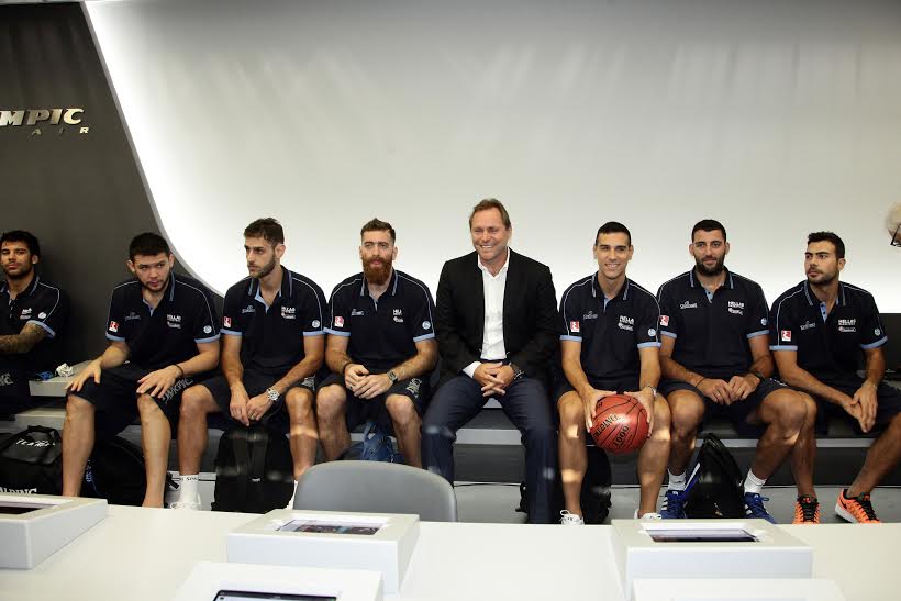 Φωτο 3. Ο Αντιπρόεδρος της AEGEAN, κ. Ευτύχιος Βασιλάκης μαζί με τους παίκτες της Εθνικής Ομάδας Μπάσκετ. |