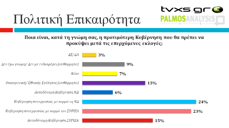Δημοσκόπηση Palmos Analysis για το Tvxs.gr: Τι κυβέρνηση θέλουν οι πολίτες (Μέρος Β)
