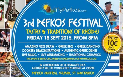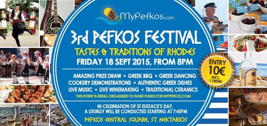 Το 3ο Φεστιβάλ Γεύσεων & Παράδοσης Ρόδου είναι ένα μοναδικό γεγονός που δεν πρέπει να χάσετε και θα πραγματοποιηθεί σήμερα Παρασκευή 18 Σεπτεμβρίου στις 20:00 στην κεντρική πλατεία των Πευκών, με Εσπερινό σε τέσσερις γλώσσες στον προαύλιο χώρο του Αγίου Νεκταρίου. Η εκδήλωση φέρει τη σφραγίδα της επιτιχυμένης οργάνωσης της ΚΟΙΝ.Σ.ΕΠ. mypefkos ενώ τελεί υπό την αιγίδα της Περιφέρειας Νοτίου Αιγαίου