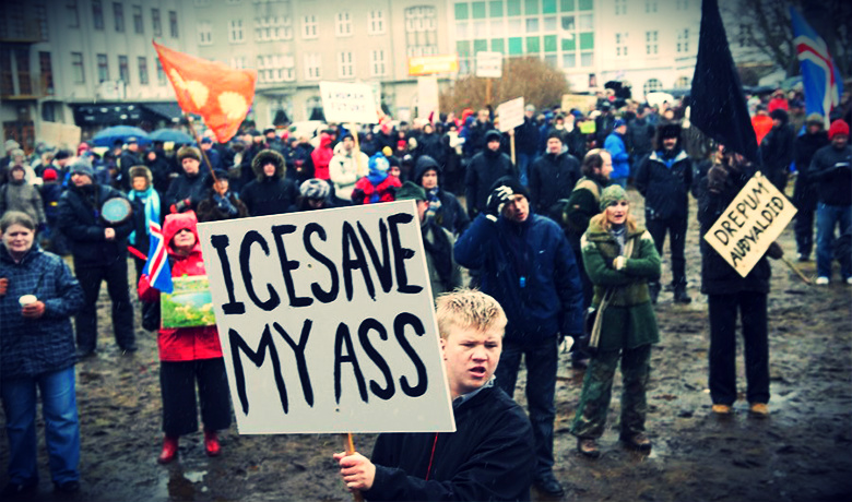 Μετά το κραχ του 2008, ενώ το Κογκρέσο έδινε στις αμερικανικές τράπεζες πακέτο διάσωσης $ 700 δις εις βάρος των φορολογουμένων, η Ισλανδία αποφάσισε να πάρει διαφορετική κατεύθυνση και να επιτρέψει στην κυβέρνησή να αναλάβει τον έλεγχο των τραπεζών για να ανασχέσει το χάος της κατάρρευσης.