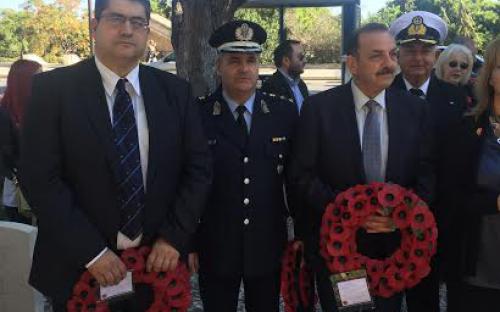 Ο Αντιπεριφερειάρχης Δωδεκανήσου κ. Χαράλαμπος Κόκκινος παρέστη στην εκδήλωση μνήμης για τους πεσόντες των πολέμων, που πραγματοποιήθηκε στο Πολεμικό Κοιμητήριο της Βρετανίας και της Κοινοπολιτείας στη Ρόδο σήμερα 11/11/2015 στις 11 π.μ. παρουσία των τοπικών αρχών, βετεράνων του Β’ Παγκοσμίου Πολέμου και πλήθους κόσμου.