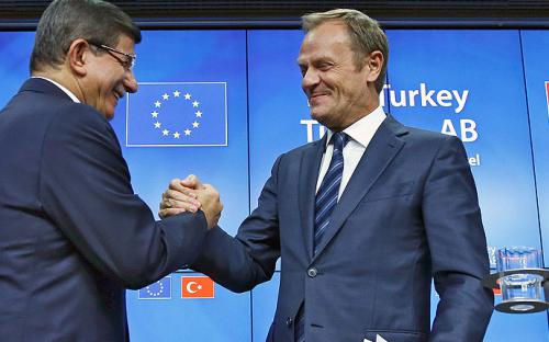 Σε συμφωνία για την αντιμετώπιση του προσφυγικού και τον περιορισμό των μεταναστευτικών ροών κατέληξαν το βράδυ της Κυριακής οι Ευρωπαίοι ηγέτες της ΕΕ και ο πρωθυπουργός της Τουρκίας Αχμέτ Νταβούτογλου. Η Γερμανίδα καγκελάριος Άνγκελα Μέρκελ επιβεβαίωσε ότι η Τουρκία θα λάβει 3 δισ. ευρώ για την αντιμετώπιση του προσφυγικού ενώ την ίδια ώρα θα επιταχυνθούν και οι συζητήσεις για την ένταξη της γειτονικής χώρας στην ΕΕ. Την ικανοποίησή τους για το κείμενο συμπερασμάτων, το οποίο συμπεριέλαβε τις ελληνικές θέσεις εξέφρασαν από τις Βρυξέλλες κυβερνητικές πηγές.