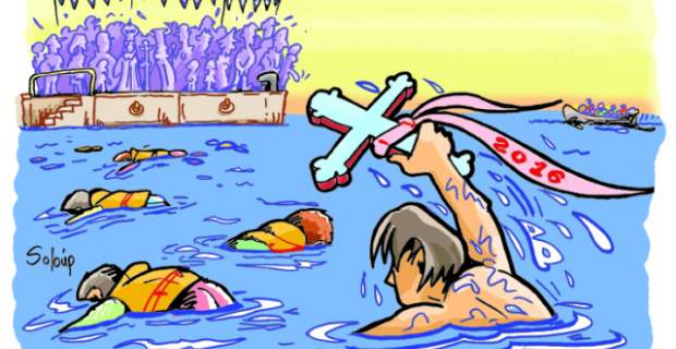 Λίγο παρακάτω από εκεί στο Τσεσμέ, 85 χιλιόμετρα δυτικά της Σμύρνης, μόλις 9 ναυτικά μίλια απέναντι από τη Χίο ο αγιασμός των υδάτων τελείται καθημερινά τους τελευταίους μήνες από όσους βουτάν στα νερά για να πιάσουν όχι το σταυρό αλλά αθώες ψυχές. Να σώσουν τα αθώα θύματα της προσφυγιάς του πολέμου. Αυτός ο άλλος καθαγιασμός των υδάτων ενίοτε. συμπληρώνεται με πνιγμένους Αϊλάν. Μωρά,παιδιά,γυναίκες,άντρες,νέους,γερούς. Όπως χθες ας πούμε όταν στις ακτές του Αιγαίου, απέναντι από το άλλο μας νησί τη Λέσβο, τα κύματα ξέβρασαν 34 ακόμα νεκρούς. Να μα το Θεό σου λέω. Δεν ξέρουμε στο πάτο της θάλασσας πόσοι σταυροί παραμένουν ακόμα. Ούτε πόσοι χωράνε στα πλεούμενα στοιβαγμένοι για να μη πατώσουν.