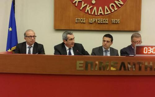 Το απόγευμα της Δευτέρας, πραγματοποιήθηκε η πρώτη συνεδρίαση για το 2016 του Περιφερειακού Συμβουλίου στην αίθουσα του Επιμελητηρίου Κυκλάδων, στο επίκεντρο του οποίου ήταν η εισήγηση του σχεδίου προγραμματισμού δράσεων τουριστικής προβολής της ΠΝΑΙ από την Αντιπεριφερειάρχη Τουρισμού κ. Μαριέτα Παπαβασιλείου.