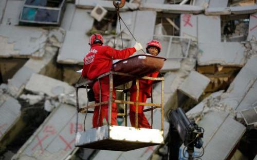 Τα μέλη των σωστικών συνεργείων συνεχίζουν τις έρευνες στα ερείπια του κτιρίου καθώς μέλη οικογενειών στέκονται σοκαρισμένοι περιμένοντας κάποια είδηση για τους δικούς τους. Ο Λιν Τόνγκ-μενγκ είπε ότι περίμενε μήπως μάθει κάτι για τους ανηψιούς του, 11 και 12 χρονών, που βρίσκονται ανάμεσα στους αγνοούμενους. "Πηγαινοερχόμουν όλη μέρα χθες και σήμερα είμαι πάλι εδώ", είπε.