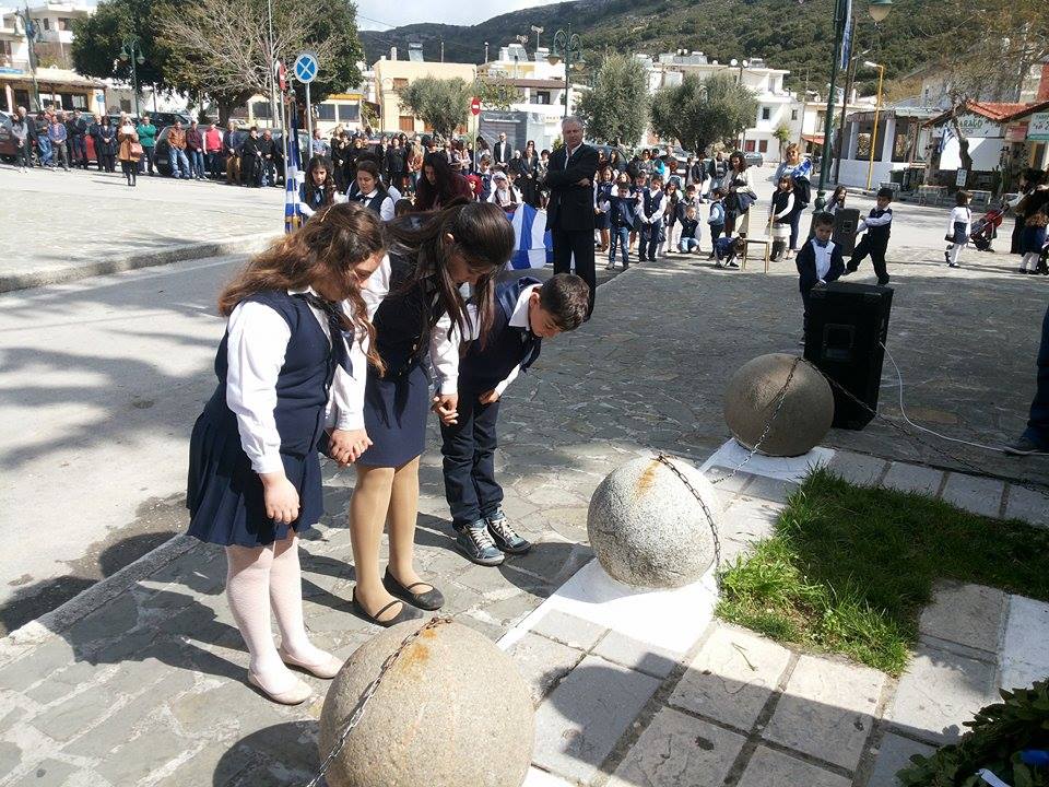 Στην ομιλία του εκπαιδευτικού που ακολούθησε, τονίσθηκε ο αγώνας των Ελλήνων Ηρώων και το παράδειγμα που πρέπει να αποτελεί για τους νεοέλληνες σκοπό ζωής, αφού η κατάσταση στον παγκόσμιο χάρτη, επιβάλλει να ακολουθούμε τώρα, περισσότερο από ποτέ, τα ιδεώδη τα οποία μας διέπουν ως έθνος.
