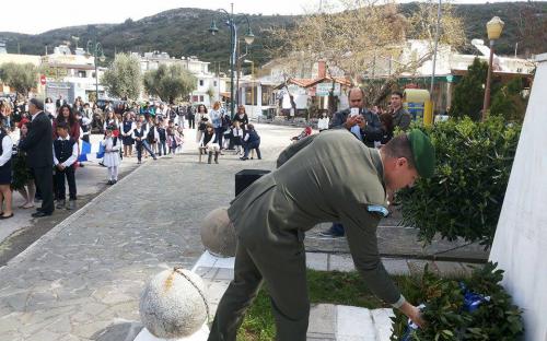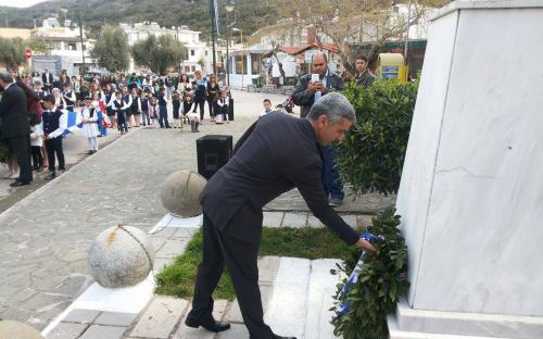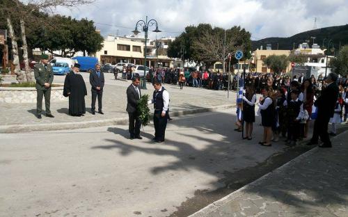 Γι την τιμή των προγόνων – αγωνιστών κατέθεσαν τα στέφανα της δάφνης, Εντεταλμένος Δημοτικός Σύμβουλος δήμου Ρόδου, Στέφανος Κυριαζής, ο Πρόεδρος της Τοπικής Κοινότητας Ψίνθου, Κυριάκος Καρίκης και εκ μέρους των Ενόπλων Δυνάμεων, από τη στρατιωτική μονάδα 474, ο Λοχαγός Νίκος Τζωρτζίνης.