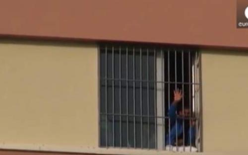Οι μετανάστες από το Πακιστάν, την Αίγυπτο, το Αφγανιστάν και το Ιράκ πίσω από τα κάγκελα ζητούν την ελευθερία τους.