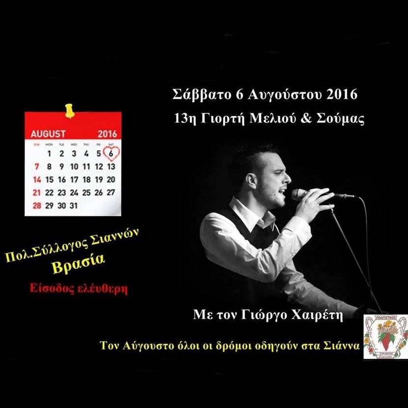 Πρόσκληση - Ο πολιτιστικός σύλλογος Σιαννών ‘’η Βρασία ’’ σας προσκαλεί σε μια γιορτή αφιερωμένη στη σούμα και στο μέλι - Σάββατο 6 Αυγούστου 2016