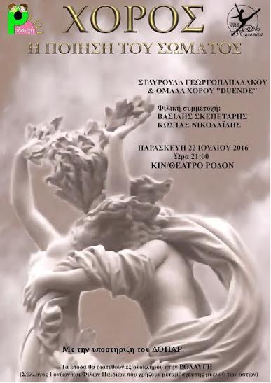 Παρασκευή 22 Ιουλίου του 2016 στο κινηματοθέατρο ΡΟΔΟΝ - χορευτική παράσταση με τίτλο «ΧΟΡΟΣ. Η ΠΟΙΗΣΗ ΤΟΥ ΣΩΜΑΤΟΣ»