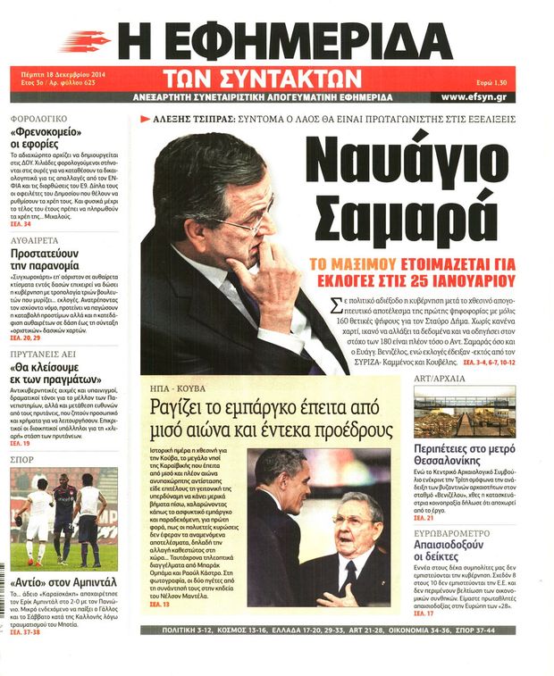 Η νύχτα ήταν μακριά μετά την πρώτη ψηφοφορία για την προεδρική εκλογή που έφερε ένα αποτέλεσμα κατώτερο των προσδοκιών του Μεγάρου Μαξίμου, όπως προκύπτει από τις διαρροές που είχαν προηγηθεί για μέχρι 167 θετικές ψήφους. Σύμφωνα με πληροφορίες, ο πρωθυπουργός αιφνιδιάστηκε, γιατί ήταν διαφορετική η εικόνα που του είχαν μεταφέρει συνεργάτες του επιφορτισμένοι με την ευθύνη για συνεννοήσεις με ανεξάρτητους βουλευτές και βουλευτές των ΑΝΕΛ. Η καμπάνα χτυπά για τους Δ. Σταμάτη και Χρ. Λαζαρίδη, που, όπως αποδείχθηκε στην πράξη, με τα μόλις 160 «ναι» στον Στ.