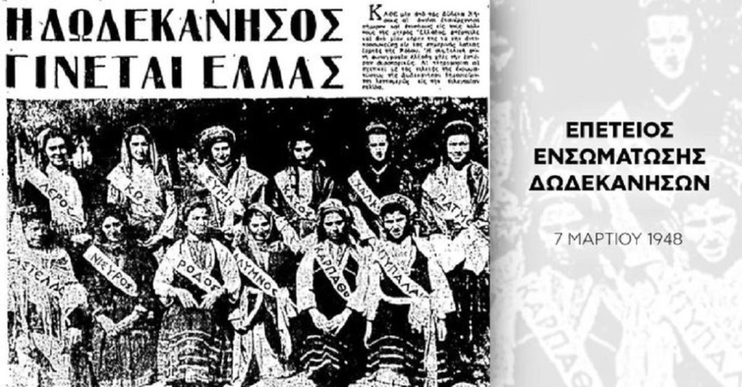 οι Δωδεκανήσιοι, μαζί με εμάς όλοι οι Έλληνες, απανταχού της γης, γιορτάζουμε σήμερα την 7η Μαρτίου.