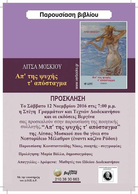 Η εκδήλωση θα γίνει το Σάββατο 5 Νοεμβρίου 2016, στις 19.00,
