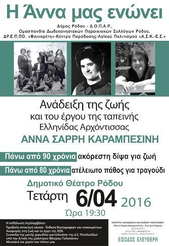 ΜΟΥΣΙΚΟΧΟΡΕΥΤΙΚΗ ΕΚΔΗΛΩΣΗ ΓΙΑ ΤΗΝ ΑΝΝΑ ΚΑΡΑΜΠΕΣΙΝΗ στο Δημοτικό Θέατρο 6/4/2016 7μμ