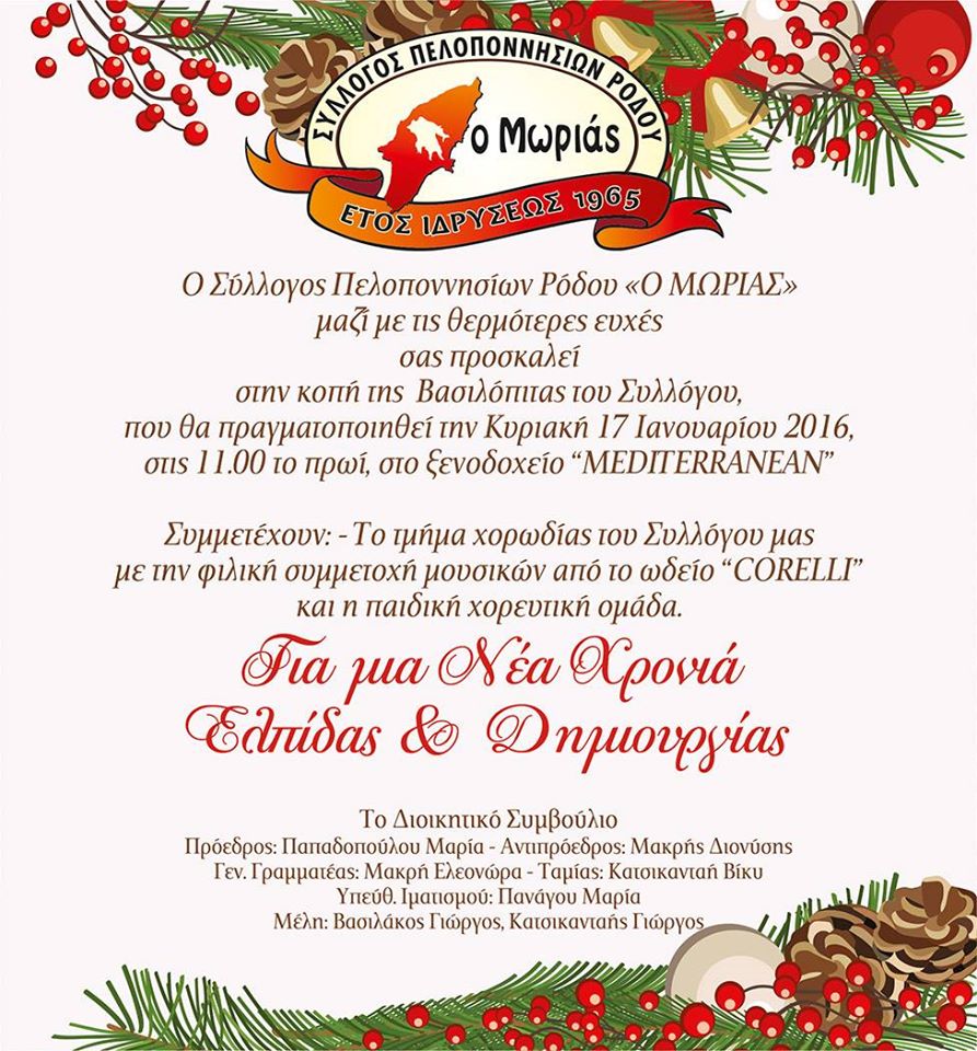 Συνδιοργάνωση: ∆ήµος Ροδίων - Τµήµα Μεσογειακών Σπουδών, Σχολή Ανθρωπιστικών Επιστηµών Ρόδου, Πανεπιστήµιο Αιγαίου Χορηγός επικοινωνίας: ΣΤΟ ΚΟΚΚΙΝΟ ΡΟ∆ΟΥ 103,7 Ρόδος, 21 Ιανουαρίου 2016, ∆ηµοτικό Θέατρο Ρόδου, Ώρα έναρξης 18.30 Είσοδος ελεύθερη