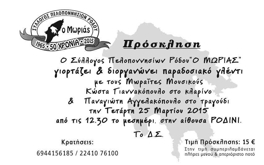 Σας στέλνουμε το πρόγραμμα των εορταστικών εκδηλώσεων για την επέτειο της 25ης Μαρτίου 2015, που θα πραγματοποιηθούν στην Τοπική Κοινότητα Πυλώνας για ενημέρωση και ανάλογη εφαρμογή.