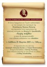Η παρουσίαση θα γίνει από τους Σουλεϊμάν Αλάγιαλη-Τσιαλίκ και Γιώργο Παπαντωνάκη. Ποιήματα θα διαβάσει ο Γιάννης Νιωτάκης.