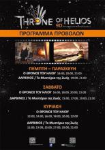 «Θρόνος του Ήλιου»: 16:00, 18:00, 20:00, 22:00«Δαρβίνος: Το Μυστήριο της Ζωής»: 15:00, 17:00, 19:00, 21:00